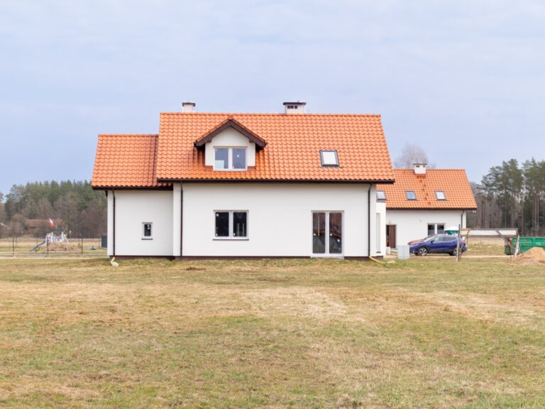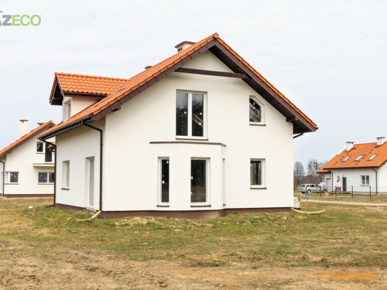 Dom położony jest na dużej działce 1500,00 – 3 000,00 m²,. Istnieje możliwość wykonania ogrodzenia z trzech stron siatką – słupki betonowe, a od ulicy wewnętrznej sztachety na podmurówce oraz brama wjazdowa. Posesja ma kształt zbliżony do równoległoboku zorientowanego krótszą podstawą wzdłuż drogi wewnętrznej. Podjazd do garażu utwardzony.
