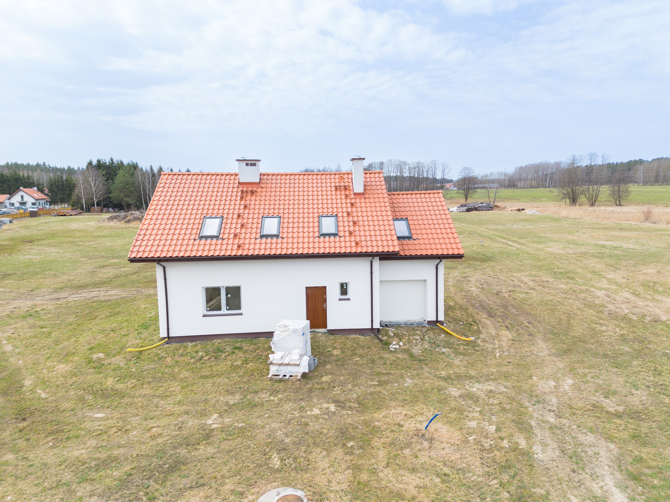 Budynek niepodpiwniczony z dachem dwuspadowym.